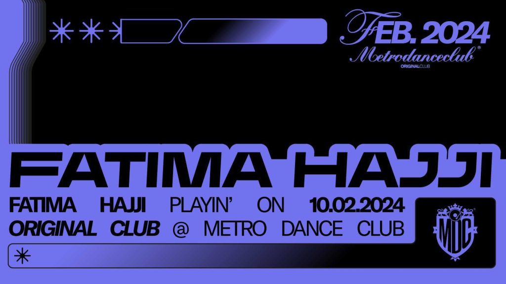 SAB. 7 de Marzo FATIMA HAJJI Fátima Hajji llega a Metro Dance Club El próximo de 7 de marzo, Metro Dance Club vivirá una noche histórica con la ansiada actuación de Fátima Hajji. Su energía sobre el escenario, su capacidad para conectar con públicos diversos y su perseverancia la han llevado a mantenerse relevante durante décadas, algo poco común en un ámbito tan exigente. Desde hace tiempo su nombre ronda por las cabinas de Metro Dance Club como una sombra que prometía volver. El momento es ahora. Fátima Hajji vuelve con todo su poder para sumergirnos en un viaje oscuro, denso y eléctrico. Este evento será como una sacudida, la energía que quedó pendiente por fin se libera. Ven a sentirla. Consigue ya tu entrada por que se avecina Sold out. FORMULARIO AUTOBUSES ENTRADAS