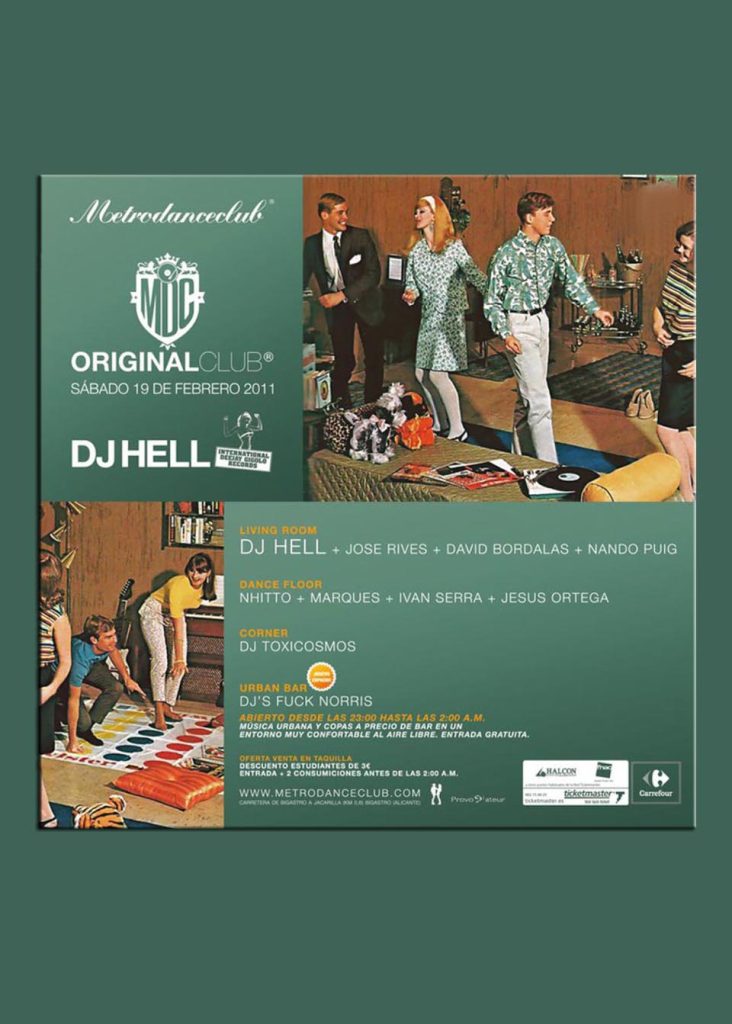 Un elitista musical y un auténtico mito de la música electrónica. Así es Dj Hell, un hombre que ha creado tendencias y ha marcado la pauta musical de muchas generaciones durante los últimos 30 años. Uno de los mejores de una hornada de músicos conocido también como el Anti-Superstar o por ser el jefazo del sello internacional Deejay Gigolo. Metro Dance Club, el templo de la música electrónica en la Comunidad, estrena temporada mañana con uno de los eventos más esperados por sus adeptos. Junto a Hell estarán también otros músicos de referencia como José Rives o David Bordalás. Todo, en un ambiente único como es el de Metro que, además, mañana estrena nuevo espacio: el Urban Bar, pensado para aquellos a los que les gusta estar a primera hora.