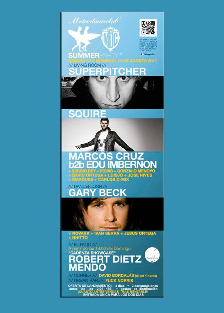 La sala alicantina Metro Dance Club ha anunciado su propuesta para el fin de semana de mediados de agosto. Un evento titulado Summer Party y que se celebrará el sábado 13 y domingo 14 del mes que viene. Desde el club han anunciado que este año harán hincapié en la animación y en la temática del evento, intentando crear una «realidad interactiva inspirada en lejanas playas Hawaianas, un espíritu surfero en un paraíso acuático, empapado de una atmósfera altamente positiva». Entre los artistas confirmados destacan las actuaciones de Superpitcher, Gary Beck y el showcase de Cadenza del domingo por la tarde con Robert Dietz y Mendo como protagonistas.